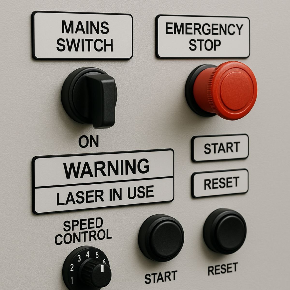 Custom machinery control panel labels improve safety, organisation and compliance across industrial equipment and automated systems. At Lasered Out, we manufacture precision engraved labels for machine controls, operator panels, electrical cabinets and industrial machinery using long-lasting materials built for demanding environments.